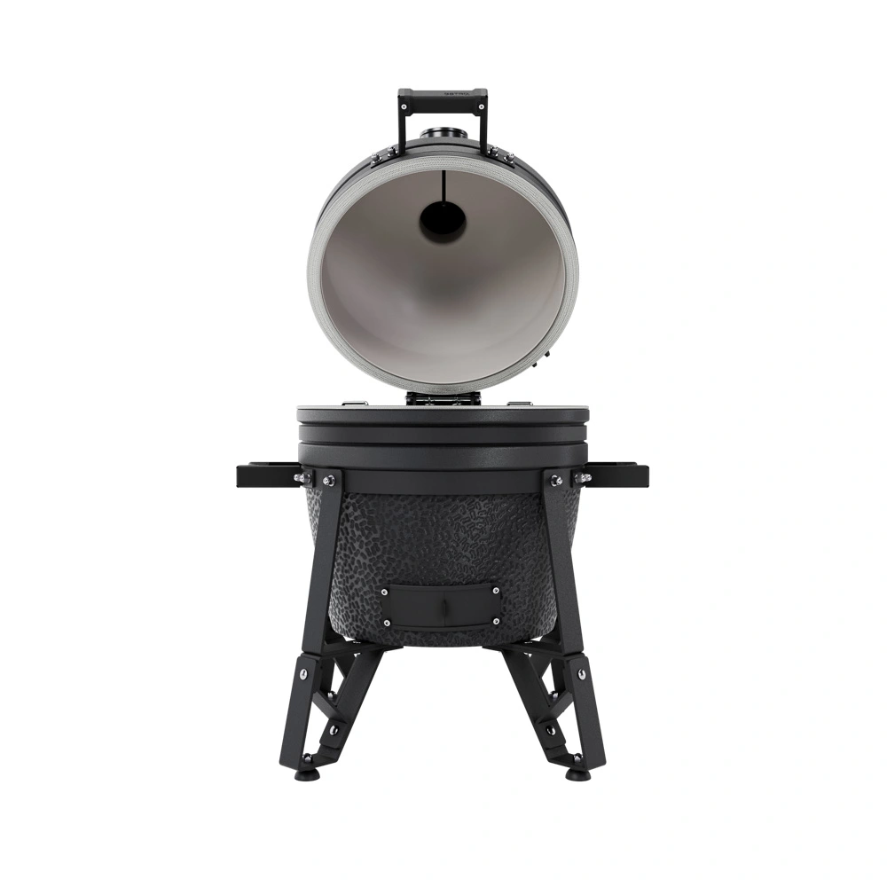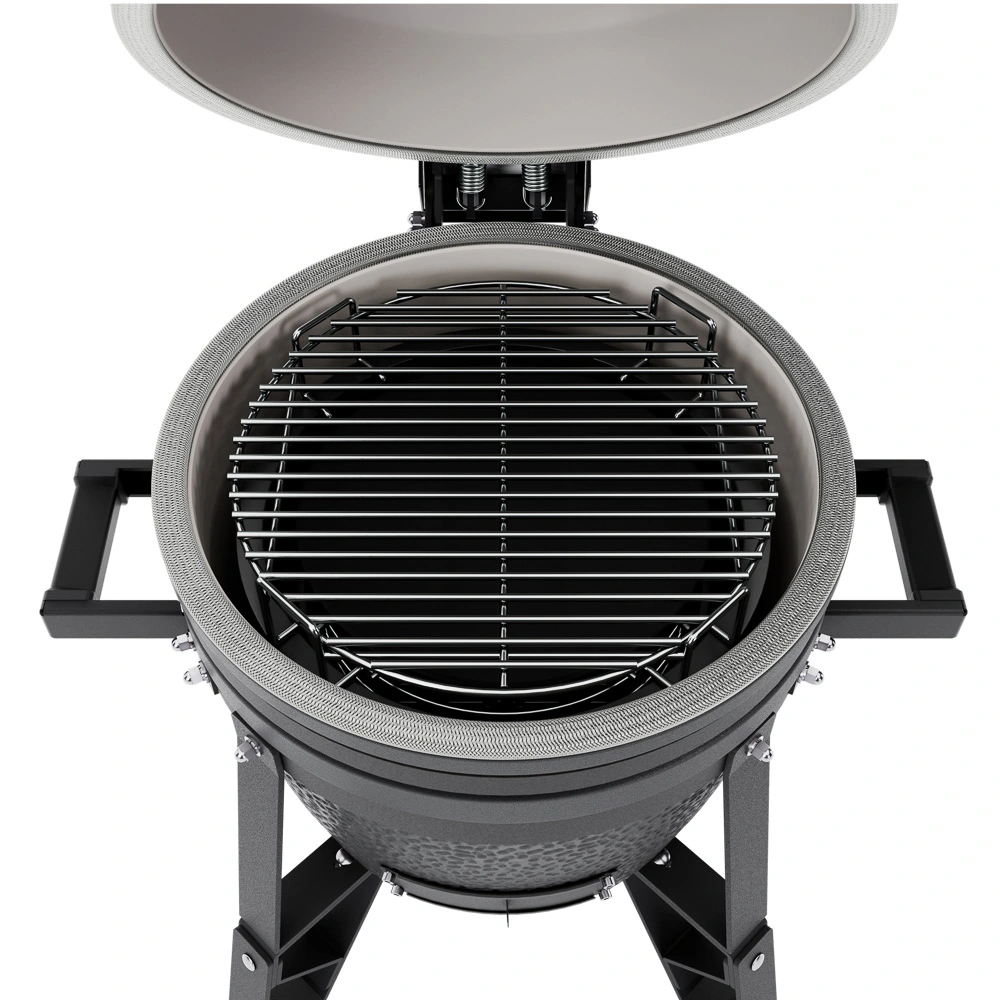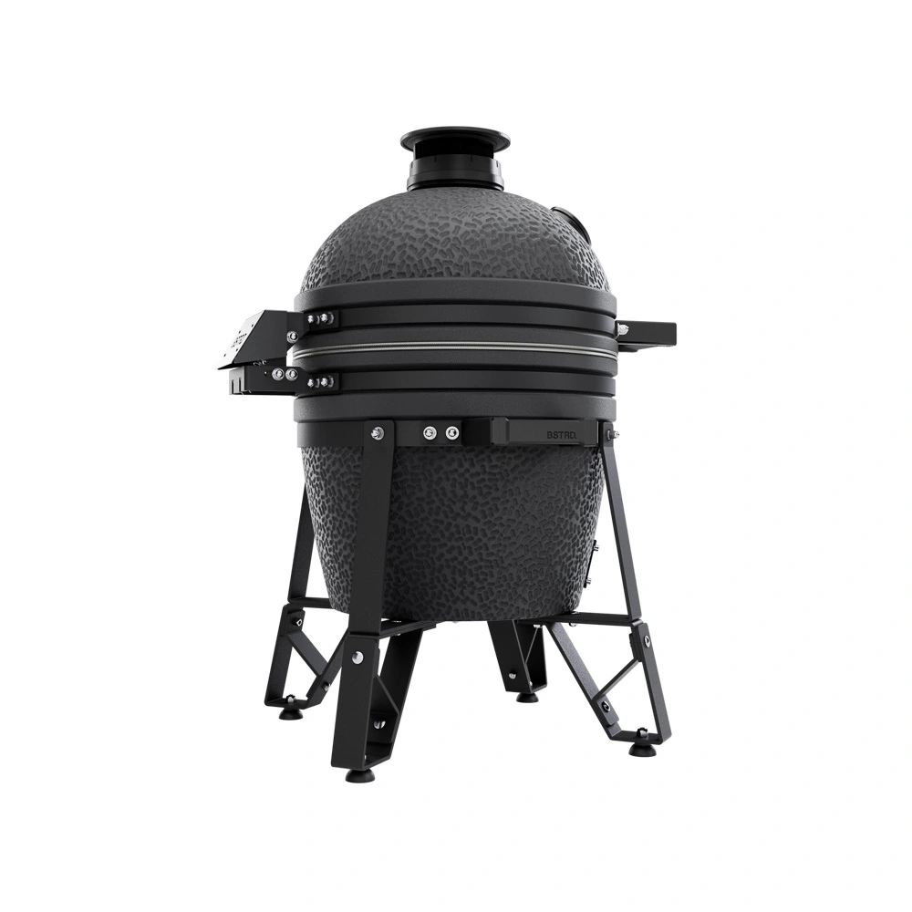 Nový model BSTRD v grafitové barvě. Keramický plášť a keramické topeniště pro dlouhé grilování, nerezový vyjímatelný koš na uhlí, půlené keramické delfektory, litinový ovladač komína a posuvná dvířka. Unikátní pletené těsnění. Nerezový rošt o průměru 34 cm Cena: EUR 921,48